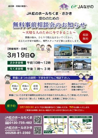 【JA虹のホールちくま・さかき】事前相談会のお知らせ